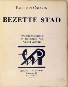 VAN OSTAIJEN, Paul - Bezette stad. Originaalhoutsneden en tekeningen van Oskar Jespers. Antwerpen, Sienjaal, 1921