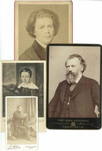 a/M, 13,7 x 9,8 cm, pasted on cardboard 16,5 c 10,8 cm.  Bust to the left by E. Hanfstaengl (1838-1904), "Hof-Photograf S.M. des Königs von Preussen".  We join : Photogr. portrait of Anton Rubinstein by Fr. Bruckmann after a painting by Eugen Felix, München, s.d., 17 x 11,2 cm. Sl. dusty and faded. - [Henri Vieuxtemps with his violin], photogr. by Ferdinand Mulnier, Paris, s.d., 10,5 x 6,3 cm. Ms. identification on verso. - 1 postcard representing Vieuxtemps as a child. (4 pcs)