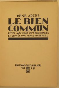 ARCOS, René - Le bien commun. Récits, avec vingt sept bois dessinés et gravés par Frans Masereel. Genève, Edit. du Sablier, 1919