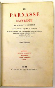 Curiosa - Le Parnasse satyrique du dix-neuvième siècle. Recueil de vers piquants et gaillards de Béranger, V. Hugo, E. Deschamps, A. Barbier, A. de Musset, Barthélemy, Protat, G. Nadaud, de Banville, Baudelaire, Monselet (...). Rome, A l'enseigne...