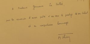 in-4, br., couv. impr. (pourtour lég. bruni). Lég. traces d'usage. Edition originale. Tirage unique à 200 ex. num. sur vergé d'Arches dont 20 h.c. (n. 74). Dédic. aut.s. à Germaine La Vallée "pour la remercier d'avoir prêté à ces vers le prestige de son talent (...)". Ex-libris Plus oultre non ident.