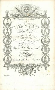 Gastronomy - CAREME, Antonin - Le pâtissier pittoresque. Ouvrage contenant cent vingt cinq sujets composés et dessinés par A. Carême. Paris, chez l'auteur et Vve Hocquart, s.d.