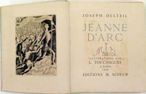 Joan of Arc - 3 works about Joan of Arc, 8vo or 4to, sewn or bound. Delteil, J. - Jeanne d'Arc. Illustrations par L. Touchagues. Paris, Edit. M. Seheur, 1926.