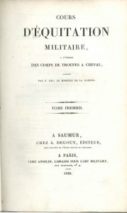 Militaria - horses - CORDIER, Jean-Baptiste, FLANDRIN, Antoine-BénigneCours d'équitation militaire, à l'usage des corps de troupe à cheval, approuvé par S. Exc. le Ministre de la Guerre. Tome premier [- second]. Saumur,Paris A. Degouy,Anselin 1830
