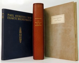 Kersten, P. - Der exakte Bucheinband (...). Halle a.d. Saale, W. Knapp, 1912. Ownership entry on title. - Collin, E. - Paul Kersten. Berlin, Corvinus-Antiquariat E. Collin, 1925. Partly unopened. - Herbst, H. - Bibliographie der Buchbinderei-Literatur 1924-1932. Leipzig, K.W. Hiersemann, 1933. Partly unopened. - Geldner, F. - Bucheinbände aus elf Jahrhunderten (...). München, F. Bruckmann, 1958. - Henningsen, Th. - Das Handbuch für den Buchbinder. St. Gallen, R. Hostettler, 1969. - Mazal, O. - Europäische Einbandkunst aus Mittelalter und Neuzeit (...). Graz, Akad. Druck- u. Verlagsanstalt, 1970. - Schunke, I. - Einführung in die Einbandbestimmung. München, Meister der Einbandkunst Internationale Vereinigung, 1974. - Sonntag, C. Jun. - Katalog XXI. Kostbare Bucheinbände des XV. bis XIX Jahrhunderts. Mit 9 farbigen und 43 schwarzen Tafelen. Leipzig, C.C. Boerner, s.d. - Bucheinbände = Bookbindings (...) = Livres dans de riches reliures. Catalogus 690 Joseph Baer & Co. Frankfurt A.M., Baer & Co., s.d. Auction catalogue.