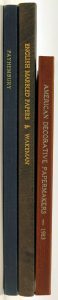 Wakeman, G. - English marbled papers. A documentary history. Loughborough, The Plough Press, s.d. 1/112 numb. copies. With 26 marbled paper specimens. - Payhembury marbled papers sampler with twenty-six samples of hand-marbled paper. Winchester, The Alembic Press, 1987. 1/145 numb. copies. - American decorative papermakers. The work & specimens of twelve craft artists. S.l., Busyhaus Publications, 1983.