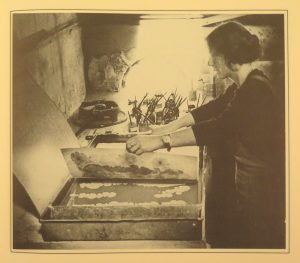 Buren, Frits Knuf, 1985 4to obl., orig. hand-bound harnass-leather binding with blindstamped title on covers. Very nice copy. Beautifully limited edition in nature-tanned leather with laced little leather straps hand-bound after the old Dutch style. One of 100 numb. and signed copies (n. 4). With 28 tipped-in samples of marbled papers made by Frigge during the summers of 1983 and 1984. The title on the front cover is scorched by hand.