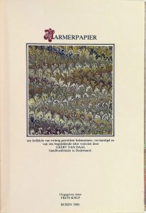 Buren, Frits Knuf, 1980 folio, publ. cloth. Limited ed. One of 55 numb. copies on Hahnemühle Antiek signed by Geert Van Daal (n. 55). With 20 full-page marbled specimens.