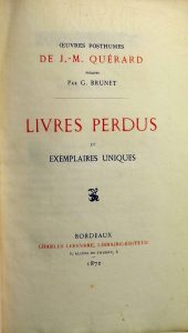 Rare books - QUERARD, Joseph-Marie - Livres perdus et exemplaires uniques. Oeuvres posthumes (...) publiées par G. Brunet.