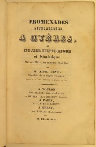 France - Provence - DENIS, Alphonse - Promenades pittoresques à Hyères, ou Notice historique et statistique sur cette ville, ses environs et les îles. Toulon, Bellue; Hyères, Jouquet; Paris, Gayet et Lebrun e.a., 1841,