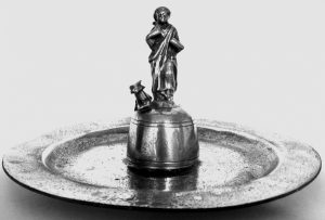 Au centre, une douille sur laquelle s’emboîte une statuette amovible, qui représente l’évangéliste St Luc, un bœuf couché à ses pieds. Diam. 25 cm.