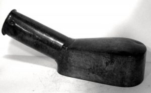 Corps trapézoïdal à angles arrondis, 18x6,5 cm, largeur progressive de  à 10,5 à 6 cm, long déversoir cylindrique (11,5 cm) implanté obliquement sur le corps. L tot.: 28 cm. Poinçon de Projet/A  Abb(eville)/Etin fin.