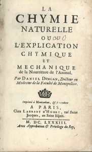 Dietetics - DUNCAN, Daniel - La chymie naturelle ou L'explication chymique et mechanique de la nourriture de l'animal. Imprimé à Montauban, Paris, Laurent d'Houry, 1683