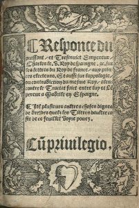 Antwerp imprint - Responce du puissant/ et Tresinuict Empereur/ Charles le .V. Roy despaigne etc. sur les letres du Roy de france/ aux princes electeurs. Antwerp, W. Vorsterman, 1527