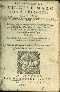 Antwerp imprint - VERGILIUS MARO, Publius - Les oeuvres de P. Virgile Maro (...), traduites de Latin en François, Les Bucoliques & Georgiques par C. Marot & R. le Blanc, Les douze livres de l’Eneide par Loys des Masures (...). Ensemble les...