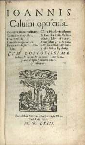 CALVIN, Jean - Opuscula. De animae immortalitate. Contra Anabaptistas, Libertinos, & Franciscum quendam. De vitandis superstitionibus. Co(n)tra Pseudonicodemos & Consilia Phil. Melanchthonis, Martini Buceri, Petri Martyris, & eiusdem Caluini etiam...