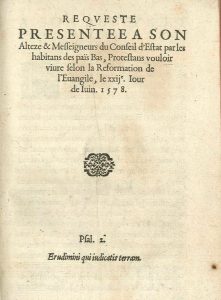 Plantin Press - Dutch Revolt - Requeste presentee a son Alteze & Messeigneurs du Conseil d’Estat par les habitans des païs Bas, Protestans vouloir viure selon la Reformation de l’Euangile, le xxije iour de Iuin. 1578. Antwerp, Chr. Hauwelius, 1578