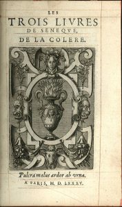 SENECA - Les trois livres de Seneque de la colere [trsl. from the Latin Ange Cappel]. Paris, J. Mettayer, 1585