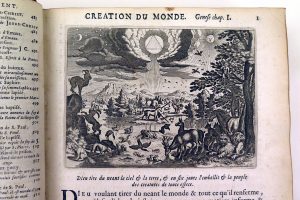 Bible illustrations - ROYAUMONT, Sieur de - L'histoire du Vieux et du Nouveau Testament, representée avec des figures & des explications édifiantes, tirées des saints Peres, pour regler les moeurs dans toute sorte de conditions. Dediée à...