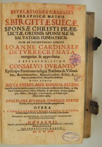 BIRGITTA (St.) - Revelationes coelestes seraphicae matris S. Birgittae Suecae (...) [ed. Gonsalvo Durante, rev. Simon Hörmann]. München, J. Wagner & J. Hermann von Gelder, 1680