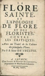 Devotion - Order of Malta - L'ECLUSE, F.B. de - La flore sainte, et l'apologie de Flore, et des floristes, contre les critiques. Avec un traité de la culture des principales fleurs. Saumur, Isaac & Henri Desbordes, 1675