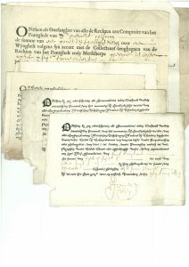 various sizes. As issued, uncut. In good condition. Nice collection of receipts of "twintichtsen penninck", "pontghelt", house rents etc. Of typographical interest: 5 forms printed in civilité.