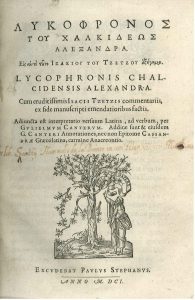 Greek literature - Geneva imprint - LYCOPHRON CHALCIDENSIS - Alexandra, cum eruditissimis Isacii Tzetzis commentariis, ex fide manuscripti emendatioribus factis. Adiuncta est interpretatio versuum Latin, ad verbum, per Gulielmum Canterum. Geneva, P....