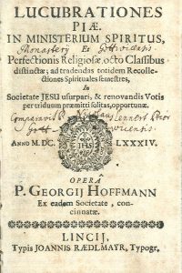 Jesuits - Lintz imprint - HOFFMANN, Georg, S.J. - Lucubrationes piae in ministerium spiritus, perfectionis religiosae octo classibus distinctae (...) in Societate Jesu usurpari. Linz, J. Rädlmayr, 1684