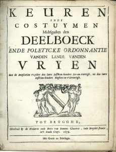 Law - Bruges imprint - Keuren ende costuymen midtsgaders den Deelboeck ende poletycke ordonnantie vanden Lande vanden Vryen, met de ampliatient’zydert den iaere sesthien-hondert ses-en-veertigh. tot den iaere sesthien-hondert negen-en...