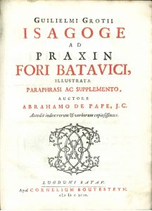 Law - GROTIUS, Guilielmus - Isagoge ad praxin fori Batavici, illustrata paraphrasi ac supplemento auctore Abrahamo de Paepe. Leiden, C. Boutesteyn, 1694
