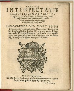 4to-size, mod. half simili or wr., gothic type. In good condition. I.a. 1. Aggreatie des Grootmachtichsten Coninck van Hispagnien/ Philips den derden (...) ghesonden aen de Groot-moghende Heeren den Staten Generael vande Gheunieerde Provintien. [S.l.s.n.], 1608, [4] ff. 2. Triumphante ende Blijde Incomste binnen Antwerpen, vande Ambassadeurs/ van wegen de Coninghen van Vranckrijck ende Enghelant (...) gheschiet den negensten February. 1609. Na de Copije. Antwerp, A. Ballo, 1609, [2] ff. 3. Naerder interpretatie (...) op de leste placcaten (...) inhoudende den voet ende orden diemen voortaen binne Ruermonde/ Venlo en(de) op het Fort van Aerssen houden zal (...) passerende (...) den Maasstroom. Brussels, H. Anthoon, 1623, [12] ff. 4. Artyckelen van vrede/ trafficque ende coopmanschap/ besloten inden name vanden (...) Prince/ Carolus (...) van Groot Britanien (...) ende Philippus den vierden Coninck van Hispanien (...) den 5. November (...) 1630. London, R. Barker; Amsterdam, Broer Jansz, 1631, [10] ff. 5. Manifest door d’inwoonders van Parnambuco (...) op’t aennemen der wapenen regens de West-Indische Compagnie. Antwerp, P. van den Cruyssen, 1646, 12 pp. 6. Spaanse verdeelinge en successie, naaktelyk vertonende de belangens van de Staaten van Europa. Cologne, P. Hamer, 1701, 15-[1] pp., and 4 similar pamphlets.