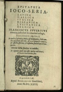 Neolatin poetry - epitaphs - SWEERTIUS, Franciscus - Epitaphia ioco-seria, Latina, Gallica, Italica, Hispanica, Lusitanica, Belgica. Cologne, B. Walter, 1623