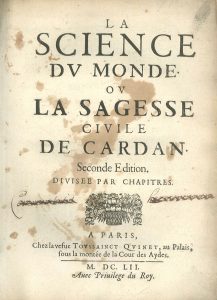 Philosophy - science - CARDANO, Girolamo - La science du monde ou La sagesse civile [2nd ed.]. Paris, Wid. T. Quinet, 1652 (col.: 30 April)