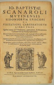 Prisons - SCANAROLI, Giambattista - De visitatione carceratorum libri tres. Quibus omnia ad visitationem, patrocinium, & liberationem carceratorum spectantia explanantur (...) [- Appendix]. Rome, “Typis Reuerendae Camerae Apostolicae”, 1655