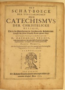 URSINUS, Zacharias - Het schat-boeck der verclaringhen over de Catechismus der Christelicke religie, die in de Ghereformeeerde kercken ende scholen van Hoogh ende Neder-Duytsch-Landt gheleert wort (…) [trsl. Festus Hommius]. Leiden, A. Clouck, 1622