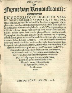 VOC - Discours by forme van remonstrantie vervatende de noodsaeckelickheyd van de Oos-Indische [!] navigatie. S.l., s.n., 1608
