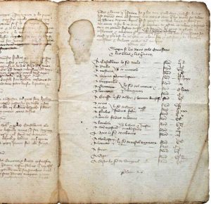 très précieux manuscrit de la fin du XIVe siècle, relatif aux mesures prises pour lutter contre Raymond de turenne (1352/1413), dit Le Fléau de Provence, qui ravage la région depuis trois ans. Il s’agit d’une copie d’époque du procès-verbal des Etats de Provence tenus en 1394 à Pertuis, écrit en vieux provençal. L’assemblée constituée par les représentants du clergé, de la noblesse et des communautés urbaines de Provence, réunis par les soins du sénéchal Georges de Marle, proteste en préliminaire de sa fidélité envers la reine Marie (1345/1404), reine de Jérusalem, comtesse de Provence et de Forcalquier et son fils Louis II (1377/1417), comte de Provence. Chaque article (capitol) de la supplique est ponctué par la phrase «Placet Domino» c’est à dire «Accordé par Monseigneur». Mention très intéressante d’engins d’une artillerie naissante (bombarde, canon) employés à la défense de la ville de Pertuis et de leur facteur, Maître Domenègue un ferrier assisté d’un campanier (fondeur de cloches). Il s’agit principalement de lever des fonds pour subvenir à la lutte contre Raymond de Turenne, le «loup de Provence» qui ravage la région. Non moins nocifs sont les mercenaires engagés pour le combattre qui, faute d’être payés, se sont emparés de forteresses et vivent sur le pays. Sont nommés des commissaires des trois états pour percevoir en chaque baillie une taxe spéciale de un gros par mois sur chaque propriétaire de maison (cap d’hostal). Les villes et la somme à payer en florins sont spécifiées nominativement. Voici quelques clauses : - Dans chaque ville seront nommés des collecteurs bons et prudhommes qui prêteront serment. Les collecteurs ne doivent pas exiger plus que ce qui est ordonné par le trésorier à peine de 100 livres d’amende. - Le trésorier ne fera aucune dépense sans l’ordre du Sénéchal ou des gens du Conseil. - Le Grand Conseil élira à cet effet 12 conseillers pour contrôler les dépenses du trésorier. - Le péage et la capage ordonnés pour la garde de Brégançon sont maintenus en leur forme première. - Si le sénéchal trouve accord avec les gens de Vitrolles et de Roquemaure il pourra lever 100 hommes d’armes avec 3 chevaux à 20 florins de gages et 200 arbalétriers à 6 florins de gages. - Ces hommes et leurs capitaines seront des paysans (gens du pays) et non des forestiers (mercenaires). Les capitaines des gens à cheval n’auront pas plus de 10 hommes et les connétables de gens à pied pas plus de 50. Le sénéchal sera leur commandant à tous. - On payera à Maître Jehan de Las Torres par le trésorier 15 francs pour la copie des capitulaires [c’est le présent document]. - Les conseillers auront plein pouvoir d’ouïr les comptes du trésorier et des collecteurs. - Jamme Gras ancien trésorier doit payer son reliquat de compte vu la nécessité où se trouve le pays. - M. le Sénéchal est supplié de remédier à l’affaire du Vicomte de Tallard afin que le pays n’en souffre pas et vive en paix; également de recouvrer les forteresses tenues par les forestiers et les mettre aux mains des paysans. - Maître Domenègue, ferrier, sera payé de ce qui lui est dû pour avoir fabriqué la bombarde servant à la défense de Pertuis. Il doit faire un autre canon au plus tôt possible compatible avec la mage-bombarde (la grosse bombarde) et refaire le premier canon. Il doit retenir chez lui Me Géraut del Solier campanier pour faire le canon neuf et l’autre canon de la mage-bombarde. - On payera au trompette de M. le Sénéchal ce qui lui revient pour avoir assemblé le dit conseil. Début du texte : « EN NOM DE DIEU SIA AMEN. ad honor et exaltacion de la Tres-excellen. Dama nra la Reyna Maria reyna de Jhrlm & de Sicilia contessa dels contats de Prohensa et de Forc(alquier) et del Tres-excellenc. Prince lo Rey Loys nre redoptable senhor son filh et por conservacion de sa honor, iuridicion et senhoria et de lur sen(al) et officials et per lo bon et pacific st... dels ditz contatz et gens en aquels h(ab) itans et por destruction et ... dels henemics rebels de la dicta nra senhoria et por conservar, ... creyster et multiplicar et pacifficar lo dit pays dels dits contats, les Srs, prelats, barons, gentilshomes et comunitats suscritz aysi en quest pnt luec de Pertuis per comandement del magnific et poyssant senhor Moss. George de Marles, sen(al) dels dits contats, an fach et adordenat los infrascritz capitols an protestacion que tacitament ni express no volon ni entendon per ren que digan in capitolon ni consenton a prejudicar al drech, juridicion, honor ni exaltacion de la dite nra senhoria ni del dich Moss. lo Sen(al) ni de lurs officials [...] ».