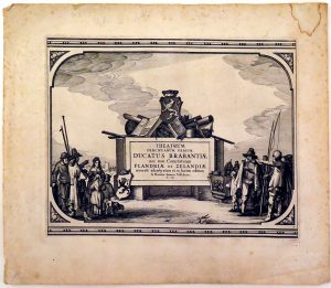 Iconographicaly very interesting collection of t.-p. and frontisp. i.a. Visscher, N.j., - Theatrum praecipuarum urbium Ducatus Brabantiae nec non Comitatuum Flandriae et Zelandiae. 1660. - D.T.V.Y. - Les estats empires royaumes et principautés du Monse. S.l., 1625. - Wytfliet, C. - La suite de l'histoire des Indes Orientales. Douai, F. Fabry, 1611. - Bibliotheca publica Academiae Lugduno-Batavae. Leiden, P.V ander Aa, s.d.- Jonston, J. - Historiae naturalis de Quadruperibus libri. Amst., J. J. Schipper, 1657. - Olearius, A. - Vermehrte Moscoswitische und Persianische (...). 1656. - Merian, M. - Topographia Sveviae. Francfurt a.M., 1643. - Cornelii a Lapide, Cornelius - Commentaria in Pentateuchum mosis. Antwerp, heirs M. Nutius, 1618. - Bourgeois, J. - Leven, lyden ende doodt ons Heren Iesu Christi in virige meditatien (...). Antwerp, Aertssens, 1623. - Dupont, L. - Abbregé tres-accomply de toutes les méditations des mystères de la foy (...). Douai, Bellerus, 1639. - De Werdt, J. - Den dach des gheestelycken levens (...). Antwerp, Mesens, 1648. - Lezena, J. de - Maria patrona, seu De singulari SS. Virginis Mariae (...). Brussels, Mommart, 1651. - Les quatre eternitez. Antwerp, Knobbaert, 1686. - Augustinus - Libri XIII. Confessionum. Cologne, C. ab Egmond, 1699. - De Cloedt - Voyage pittoresque (...), Chateaux et monuments (...). Brux., Jobard, c. 1820. Engr. by i.a. A. Schoonebeek, M. La Cave, Blokhuys, P. Clouwet, Gaspar Huberti, J. Harrewijn, Campion, Lommelin, C. Galle, J. vande Avele, Appelmans, F. Bouttats, W. Kilian, Ant. vander Does, etc. Includes also numerous t.-p. printed in red and black, with woodcut printer's marks or vign.