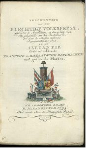 Amsterdam - French Revolution - Beschryving van het plechtige volksfeest, gehouden te Amsterdam, op den 19 Juny, 1795, by gelegenheid van het installeeren der door de volksstem verkozene representanten der stad, en de Alliantie gesloten tusschen de...