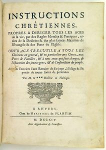 Antwerp imprint - Instructions chrêtiennes, propres a diriger tous les ages de la vie, par des regles morales & pratiques tirées de la Doctrine & des plus saintes maximes de l’Evangile & des Peres de l’Eglise. Antwerp [= Paris ?], "Chez les...