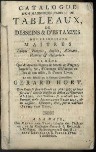 par le fameux connoisseur Gerard Hoet. Cette vente se fera le lundi 25. août 1760 & jours suivans (…).