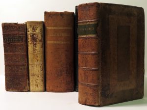 4to, cont. half vellum (partly red coloured, red paper on covers lacking), spine on 5 raised bands (soiled, rubbed), [12]-740 pp. (minor spotting, last blank lacking, *3 loose inserted). Later ed. of an exegetical commentary on the Gospels by the famous bishop of Ypres (1585-1638). Ill. with an engr. author's portrait on title. Ownership entry L. Hoebens. Stamps on title. Ref. BL. SB Antwerp. Not in Opac KBR, BnP. We join : The Holy Bible, containing the Old and New Testaments: translated out of the original tongues : and with the former translations diligently compared and revised. Oxford, Dawson, Bensley, Cooke, Clarendon Press, 1804, large 8vo, cont. blindruled sheep (corners bumped), gilt ruled spine (joints sl. splitting, sm. def. at tail), gilt green leather title label, [1008] pp. (some spotting). Nice example of an early 19th c. English Bible, dedicated to James, King of England. Ownership entry Wood, Canterbury. Ref. Darlow/Moule 922. BL (1 : version of 1611). - Des Roches, Jean - Nieuw Nederduytsch en Fransch woorden-boek. Nieuwen druk, overzien en merkelyk vermeerderd. Antw., J. Grangé, s.d., 8vo, cont. sheep (rubbed, corners bumped), gilt orn. spine (def. at head & tail, upper joints splitting), 5-[2-1 bl.]-993-[1 bl.] pp. (some dampstaining, mouldy at end). Later ed. of this Dutch-French dictionary by the Dutch historian and linguist Des Roches (1740-1787). Woodcut ornament on title. Ownership entry on endpaper Henzy. Ref. Cp. SB Antwerp, BnP (2 parts in 2 vol.). (4 vols)