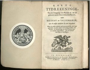Dordrecht imprint - Korte tydrekeninge, van de scheppinge des werelds af, tot de geboorte van de Heere Jesus Christus toe. Dordrecht, J. van Braam, 1702