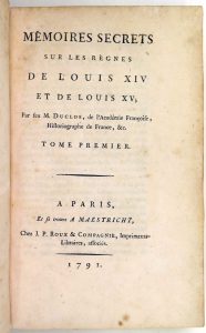 France - DUCLOS, Charles - Mémoires secrets sur les règnes de Louis XIV et de Louis XV (...). "A Paris, et se trouve à" Maestricht, J.P. Roux, 1791