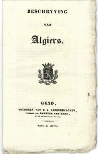 Meyer, Livinus de, S.J. - De gramschap in dry boeken verdeelt. Over ettelyke jaeren in Latynsche dichten in 't licht uyt-gegeven (…). Nu dood den selven in Neder-Duitsche rymene overgestelt. Ghent, P. de Goesin, 1778, 8vo, half leather, marbl. paper on covers, gilt title label, 74-[2] pp. Good copy. Ghent ed. of the trsl. by Livinus de Meyere (1655-1730) in Dutch of his "De ira" (1693). - Beschryving van Algiers. Ghent, J. Vanderhaeghen, s.d., 8vo, sewn, With 2 woodcuts on covers. - Volmaekten Droomboek (...) gevolgd door de Kaerttrekking, (...) en het handkyken. Ghent, Gimblet, s.d., in-12, half leather, orig. covers bound with. Nice little book with +/- 200 woodcuts. - Snoeck's Raadselboek. Ghent, Ducaju & Son, s.d., in-12, half simili. Booklet with 670 riddles. - Invallende gedagten op verscheyde voorwerpen ofte het schouw-tooneel der gebreken. Ghent, Fernand, 1780, blue wr. (soiled, frayed edges). Ms. ownership entry.