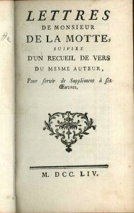 LA MOTTE, Antoine Houdar de - Lettres de Monsieur de La Motte, suivies d'un recueil de vers du mesme auteur, pour servir de supplément à ses oeuvres. S.l., s.n., 1764