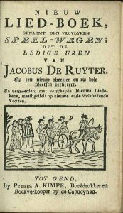 Songbook - DE RUYTER, Jacobus - Nieuw lied-boek, genaemt den vrolyken Speel-wagen oft de ledige uren. Ghent, P.A. Kimpe, after 1799