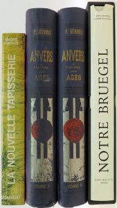 2 vol., 4to, geïll. linnen band (kl. defect aan onderkant rug). Eerste en enige uitgave waardevol omwille van z'n rijke iconografie. Bijgevoegt : Claessens, B., Rousseau, J. - Notre Bruegel. Antwerpen, Fonds Mercator, 1969, 4to, publ. cloth, dw., slipcase. - Kuenzi, A. - La nouvelle tapisserie. Genève, Les Editions de Bonvent, 1974, 4to, publ. cloth, dw., cardboard slipcase. (4 vol.)
