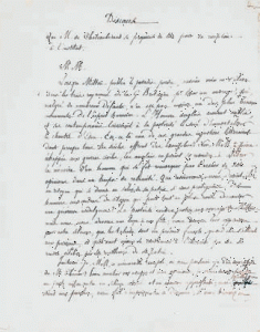 CHATEAUBRIAND François-René de. « Discours que M. de Chateaubriand se proposait de lire pour sa réception à l’Institut ». Manuscrit de la main de Félicité de Lamennais. [Vers 1811 (?)] ; 11 pages in-folio.