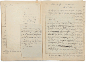 Les trois pièces ont figuré à l'exposition Lamennais de la Bibliothèque nationale, Paris, 1954, nos 27 et 118 du catalogue.- Elles se trouvent dans un cahier de 114 pages in-folio mêlées à des copies de lettres de Lamennais.